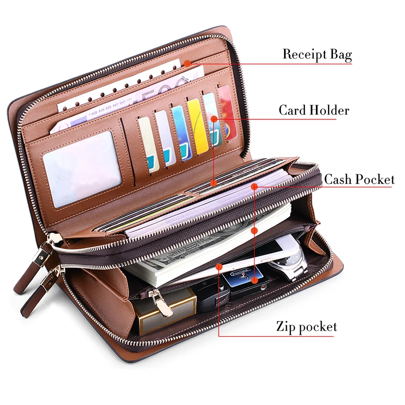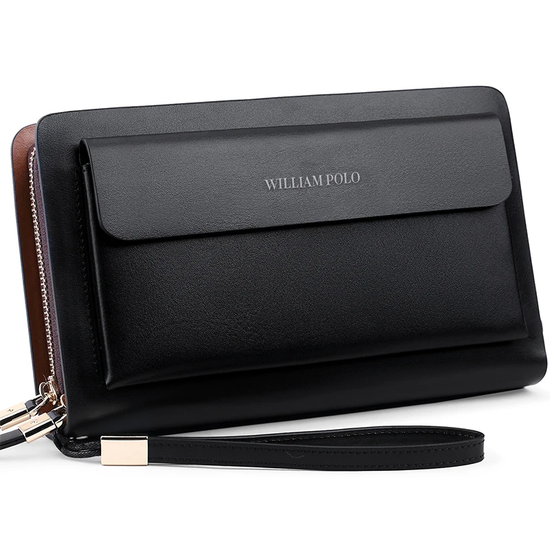 Best Product WILLIAMPOLO Men Wallet Genuine Leather Long Double zipper Wallets Business Clutch bag Male Handbag