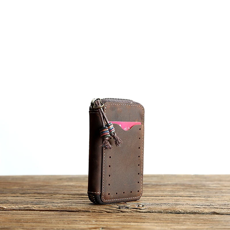 New Product High Quality Men Genuine Leather Key Holder Leather Key Wallet Zipper Men Housekeeper Women Key Cas